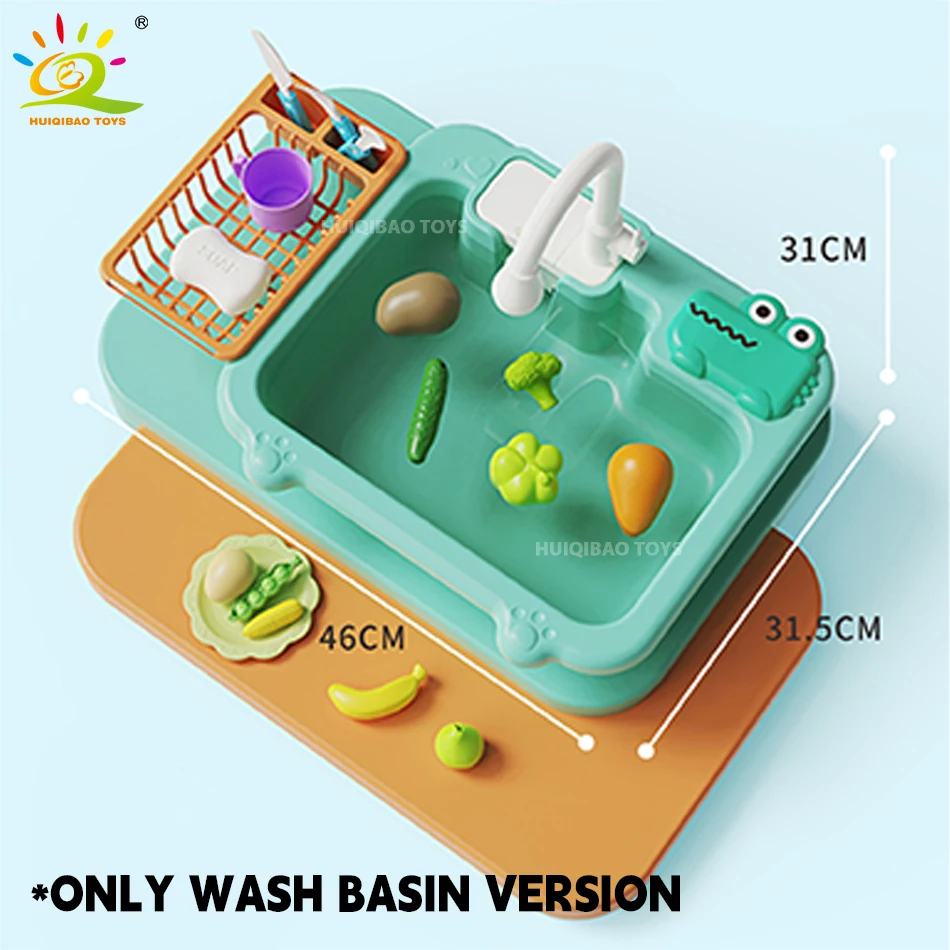 ✅ 【Automatic Water Circulation System】The safe electric tap has an automatic water circulation system with a waterproof motor that pumps water smoothly to help conserve water,allowing your child use the flowing water to wash toys food and kitchenware in the sink toy, like real washing.