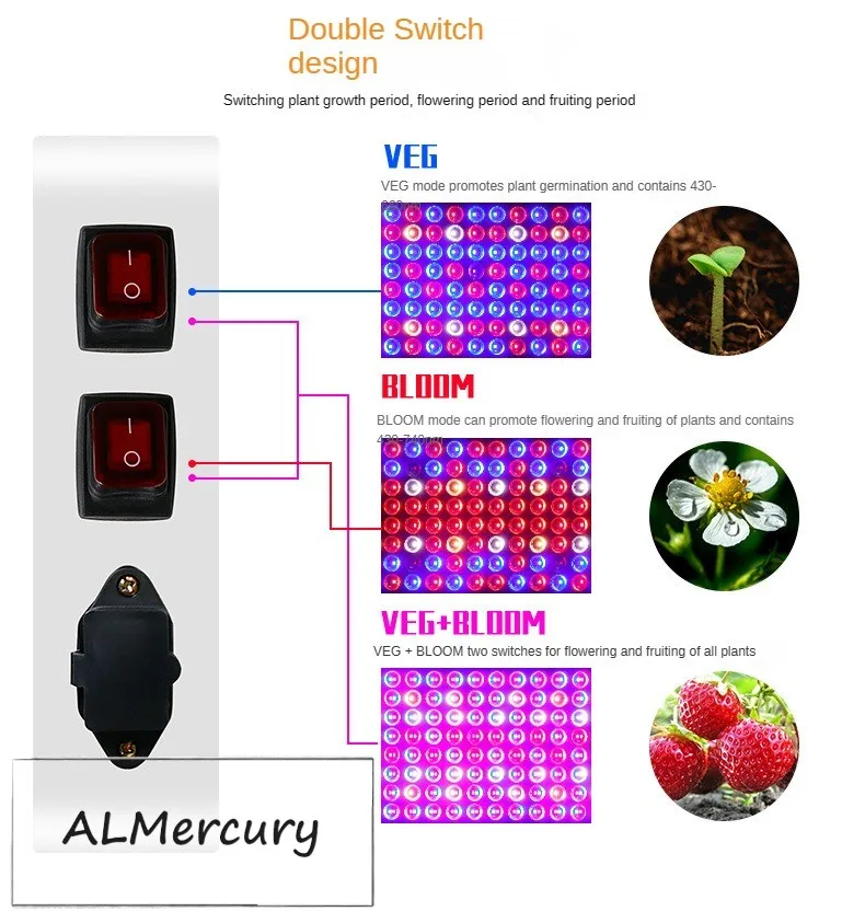 Double switch,Three working modes (Full Spectrum/VEG/BLOOM)