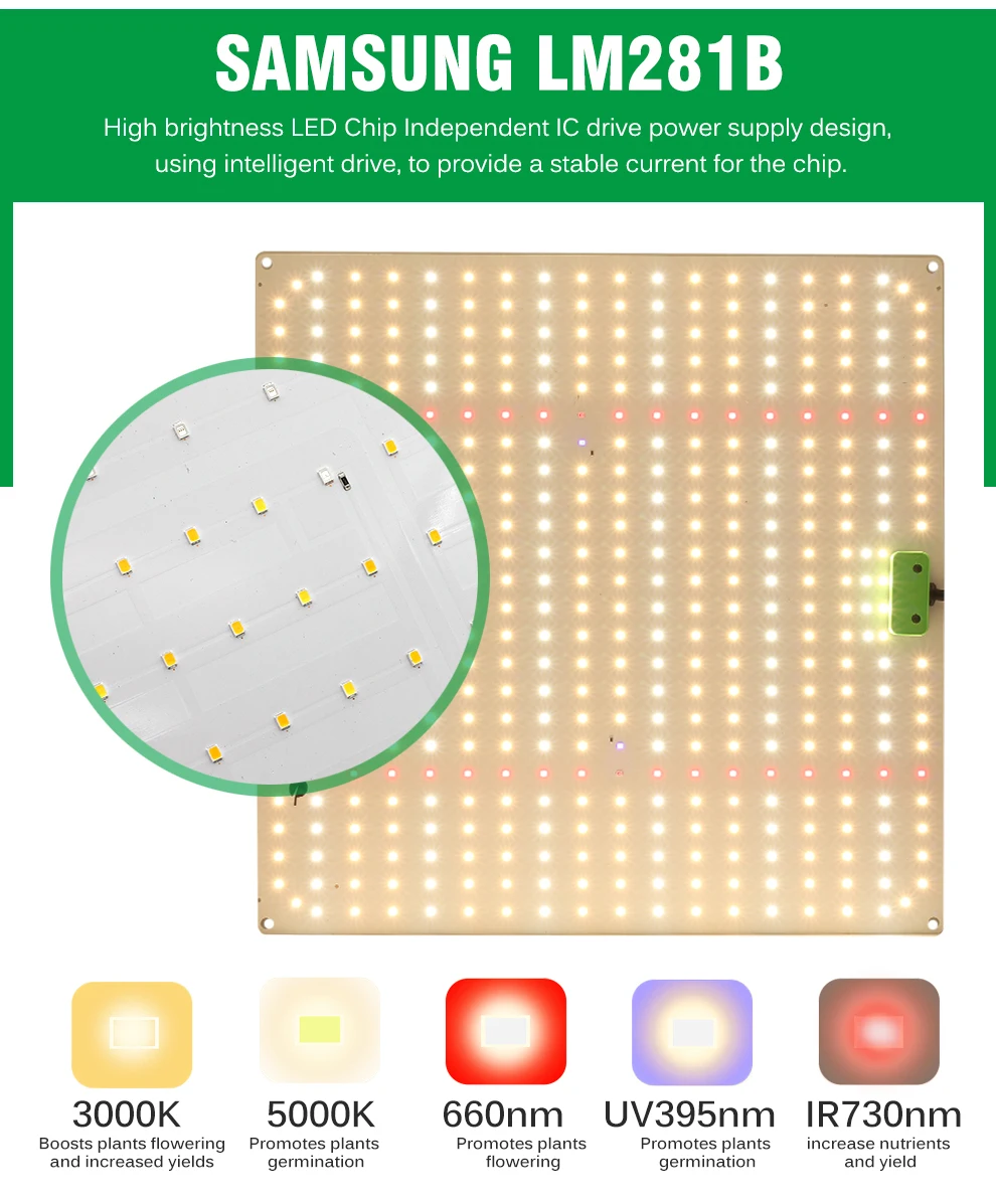 1.Full spectrum that is necessary & critical for plants growing & flowering, it can promote chlorophyll synthesis and photosynthesis effectively.