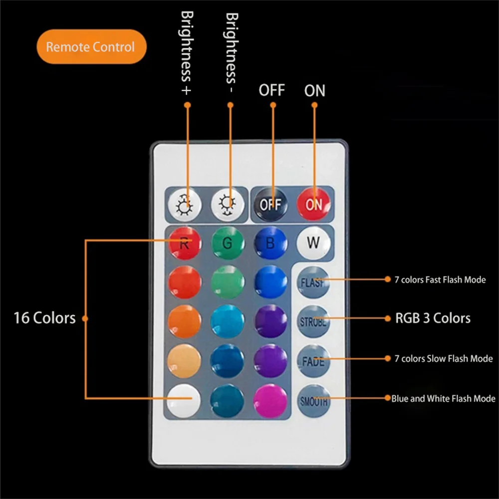 【3 Patterns In 1】 Main Features: 3 Gaming patterns / 16 colors changing / Remote Control function / Dimmable / 4 modes of color flashing (Flash, Strobe, Fade ad Smooth) / Two ways of power supply: 3* AA Batteries or USB connection (Suggested)