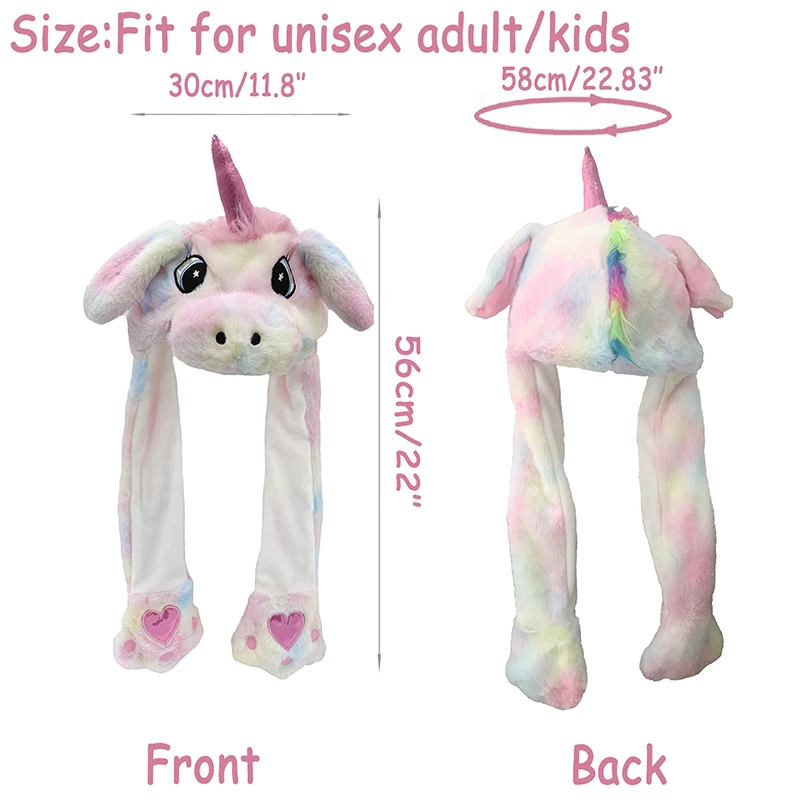 Cartoon Unicorn Animal Hat Plush Bunny Ears Moving Jumping Up Toys Dress Up Funny Cosplay Party for Kids Christmas Gift for Adult