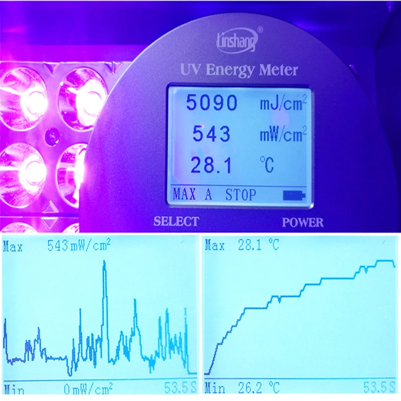 1.Cold light source,the surface temperature of the object being illuminated rises slowly,solves the problem of high heat output of traditional UV curing lamp,effective mitigation of thermal damage.